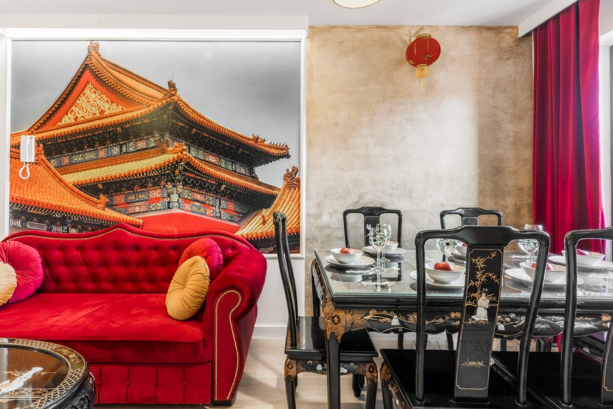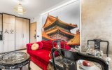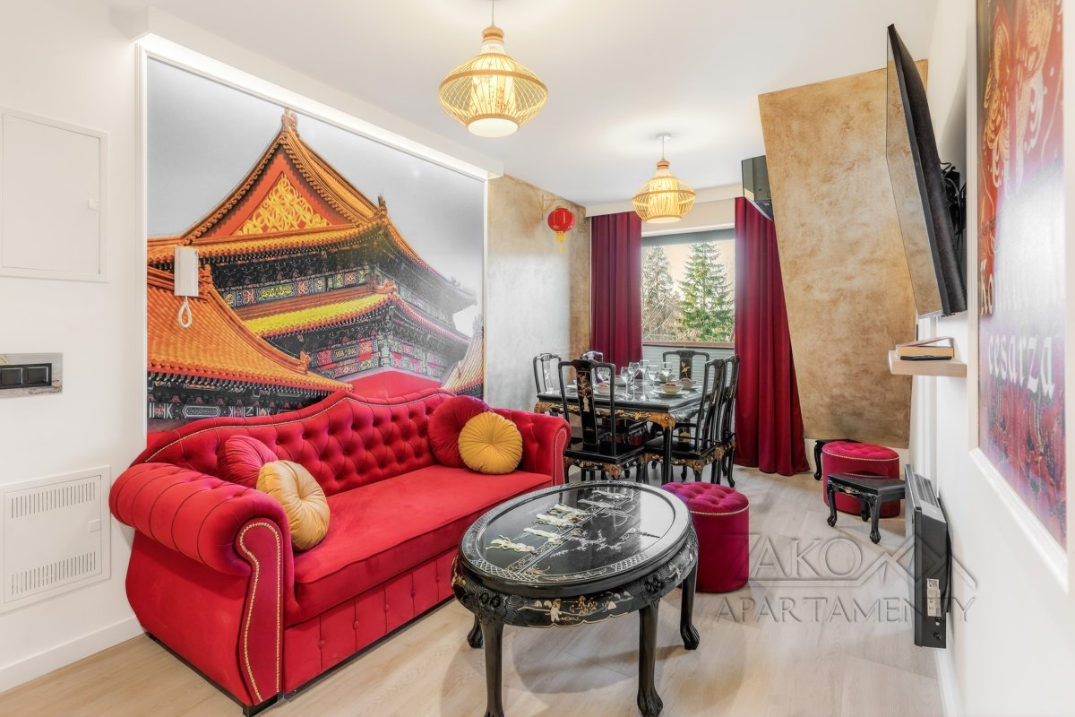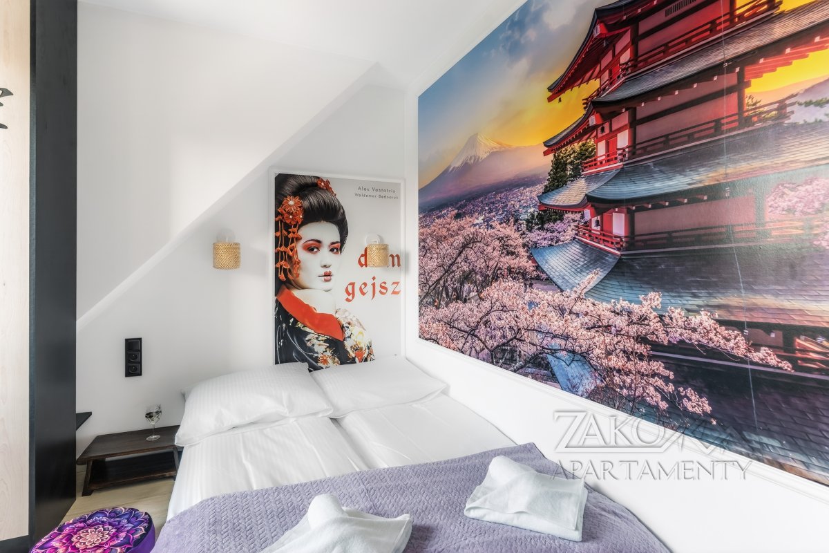 | Sypialnia 2 | W stylu japońskim, łoże małżeńskie (140cm/200cm) szafa, pufa, TV, pościel |