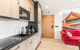 | Kuchnia | Płyta elektryczna 4 x palnik, mikrofala z funkcją grilla, zmywarka, czajnik elektryczny, lodówko - zamrażarka, ekspres do kawy (przelewowy), garnki, naczynia, sztućce, szkło. |