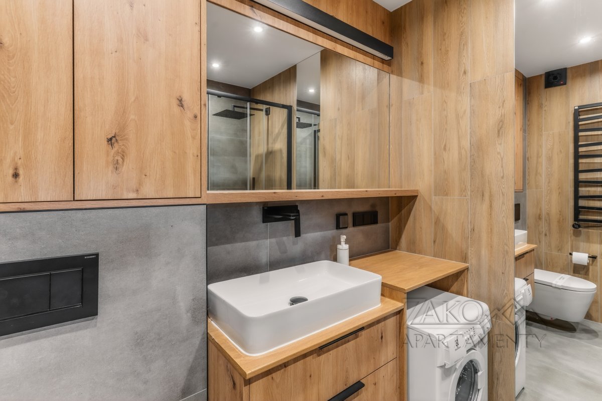 | Łazienka | Duża kabina prysznicowa, umywalka, wc, bidetka, ręczniki, suszarka do włosów, PRALKA |