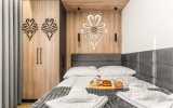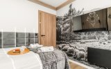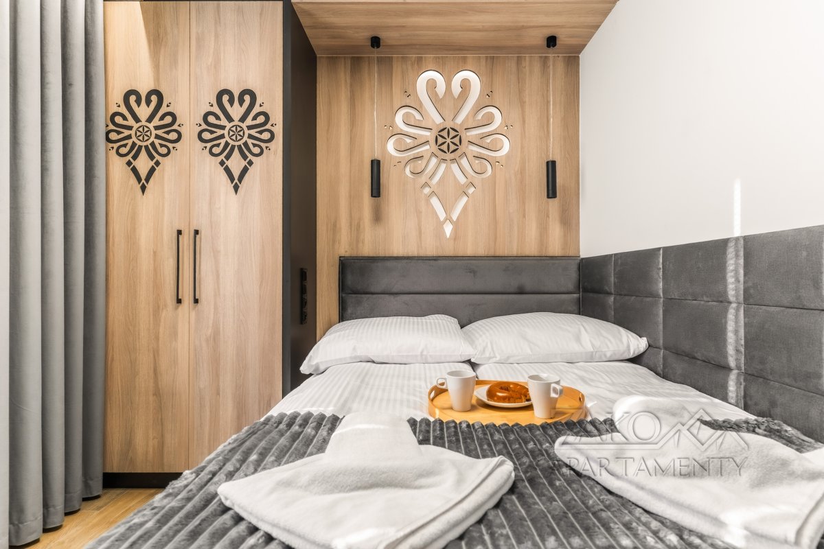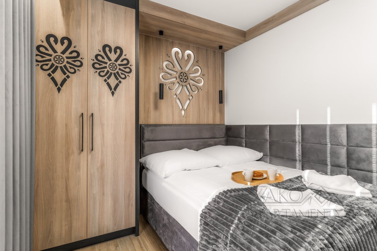 | Sypialnia 1 | Łoże małżeńskie (140cm/200cm) szafa, TV, pościel, wyjscie na balkon z widokiem na Giewont |