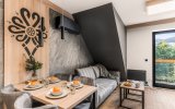 | Struktura | Duży salon z klimatyzacją, 2 x sypialnia, aneks kuchenny, łazienka, balkon z widokiem na GIEWONT |