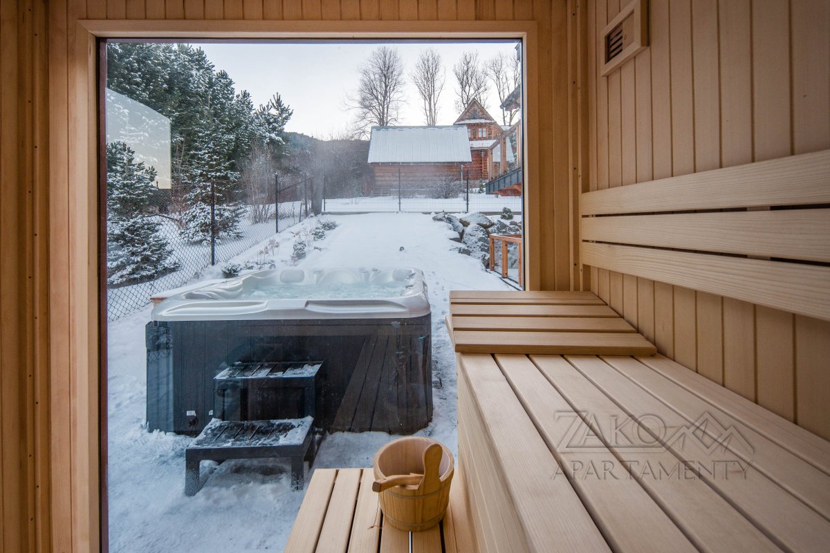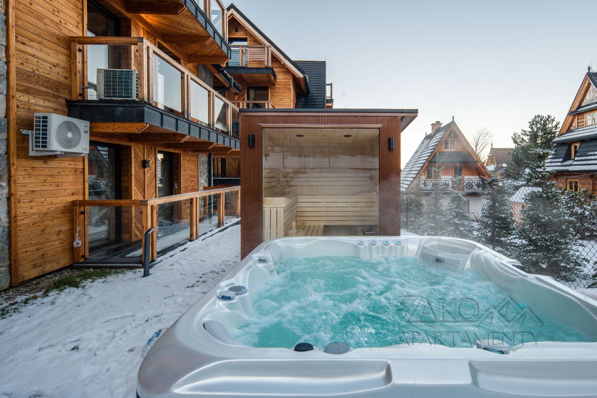 Goście Apartamentu Królewskiego mają również dostęp do strefy SPA z jacuzzi i sauną - idealnej na relaks po dniu spędzonym w górach lub na odkrywaniu uroków Zakopanego.