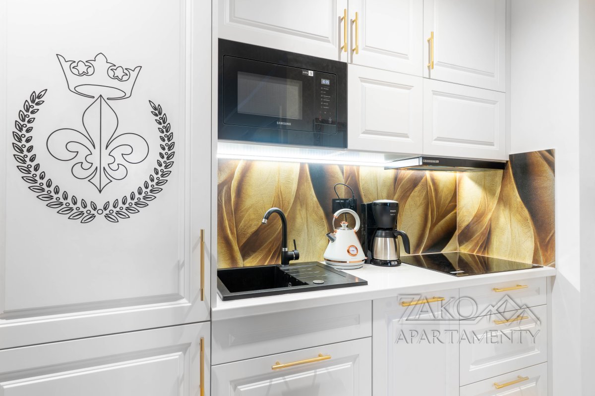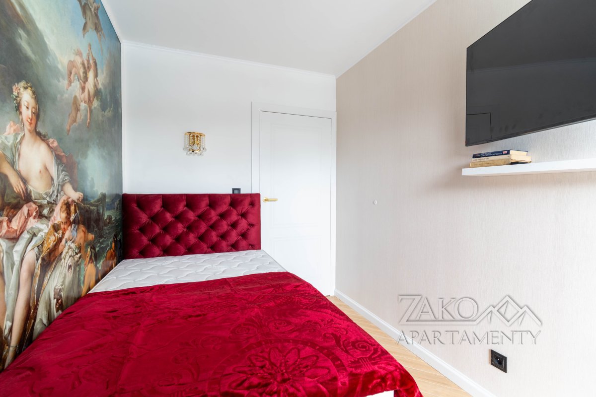 Apartament Królewski to wyjątkowe wnętrze łączące luksus, sztukę i ponadczasową elegancję. Położony w prestiżowym obiekcie Panoramic Apartments, w samym centrum Zakopanego, u stóp majestatycznego Giewontu, stanowi doskonały wybór dla Gości ceniących wysoki standard i niepowtarzalny klimat.