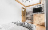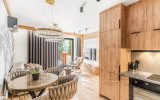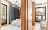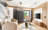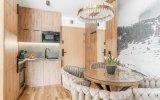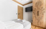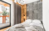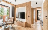 Do dyspozycji Gości pozostaje przestronny salon z wygodną strefą relaksu i wyjściem na balkon, w pełni wyposażony aneks kuchenny oraz komfortowe sypialnie zapewniające spokojny, regenerujący sen. Apartament został zaprojektowany z myślą o funkcjonalności i wygodzie, przy jednoczesnym zachowaniu eleganckiego, górskiego charakteru.