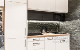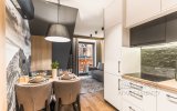 Apartament Zakopiańska Ostoja to idealne miejsce dla osób szukających komfortu i wytchnienia w wyjątkowej, górskiej scenerii. Apartament znajduje się w prestiżowym obiekcie Panoramic Apartments w samym centrum Zakopanego i oferuje nowoczesną, klimatyzowaną przestrzeń wzbogaconą o stylowe akcenty. Wnętrze zachwyca szlachetnym połączeniem drewna, kamienia i szarości, a nastrojowe, czarno-białe fototapety z widokiem Giewontu i górskiego żlebu nadają mu niepowtarzalny charakter.