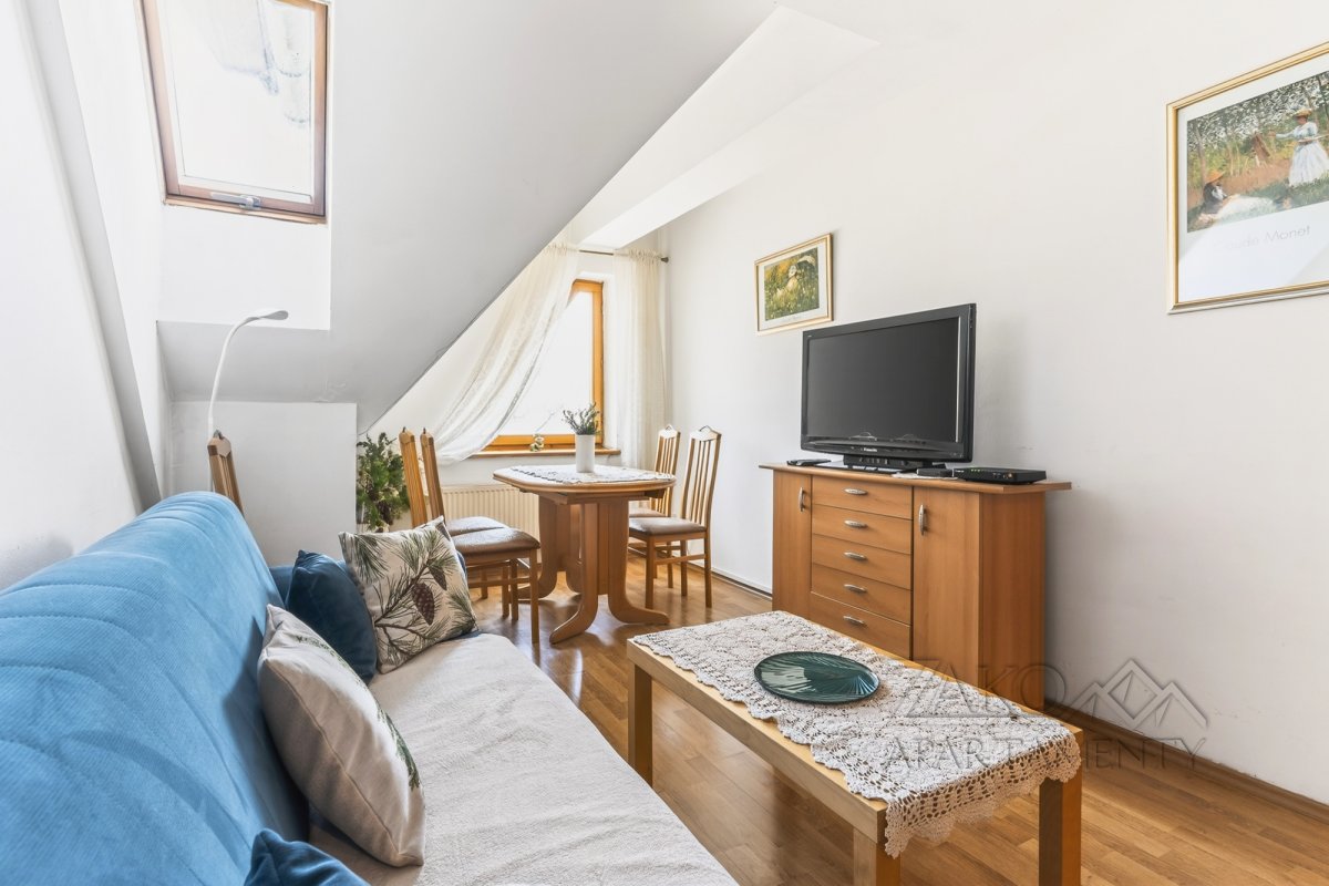 Apartament Góralski Sen to komfortowe i w pełni wyposażone mieszkanie dla 4 osób, położone w samym centrum miasta, tuż obok Krupówek. To doskonała lokalizacja dla tych, którzy chcą cieszyć się miejskimi atrakcjami i bliskością gór jednocześnie.