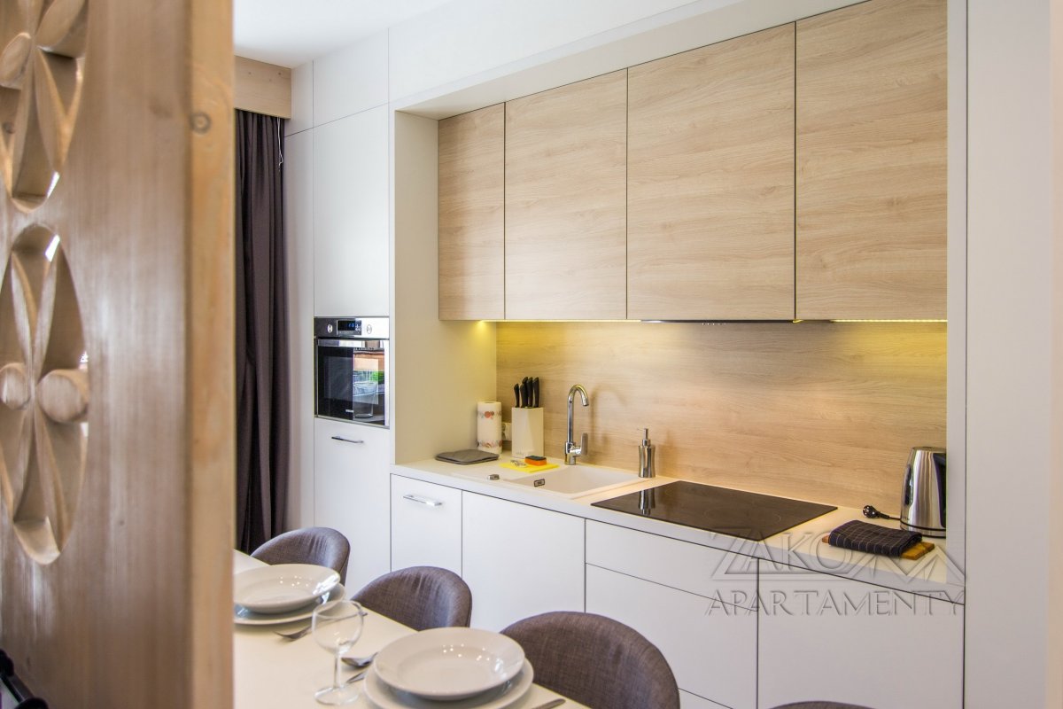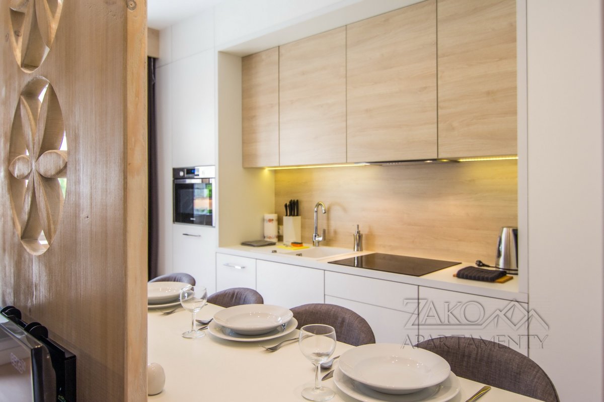 Apartament Świerkowy jest wnętrzem jasnym i przestronnym, w którym łączą się esencja elegancji, STYLU GÓRALSKIEGO i nowoczesności. Drewniane stylowe elementy nadają niepowtarzalny klimat zwiazany z Zakopanem. Wieczorami goście będą mogli zrelaksować się w przestronnym salonie przy cieple KOMINKA.