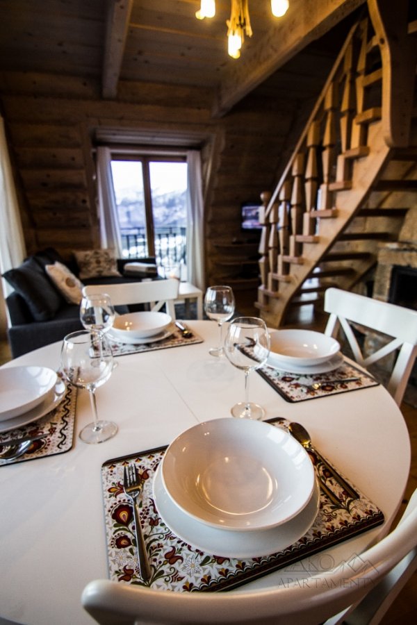 Apartament PARADNY urządzony jest w stylu zakopiańskim, który łączy góralszczyznę z nowoczesnością. W drewnianym wnętrzu i przy stylowym KOMINKU można poczuć klimat otaczajacych GÓR. W tym samym budynku znajduje się Apartament Stylowy oraz Apartament Widokówka, co pozwala na miłe spędzenie czasu kilku zaprzyjaźnionych rodzin.