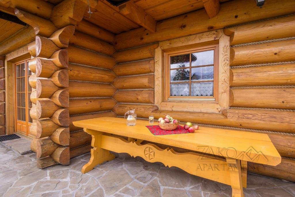 | Taras | Tak - DUŻY z WIDOKIEM na GÓRY - Giewont, meble ogrodowe drewniane, ława i stół. |