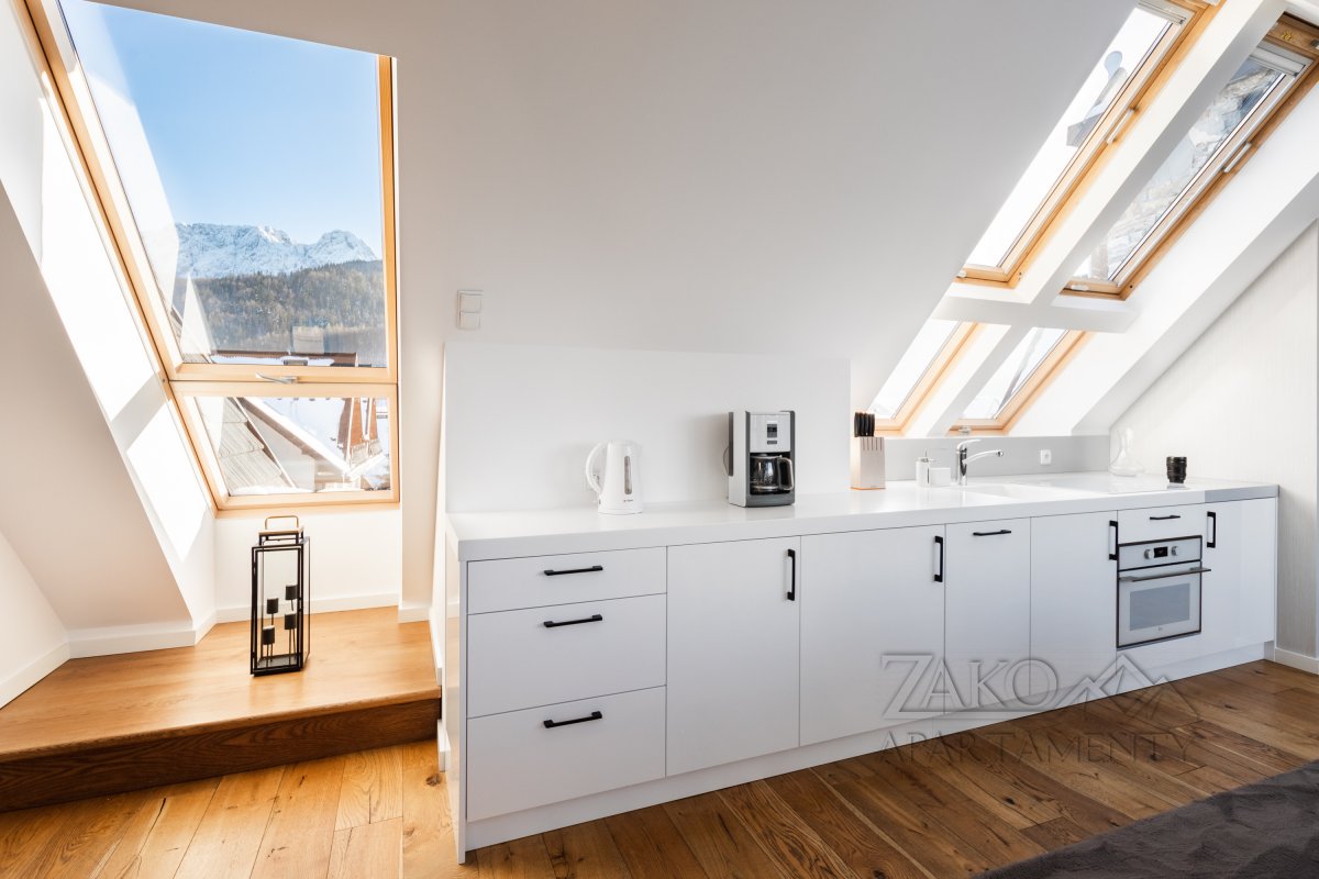 Apartament znajduje się w kompleksie APARTAMENTY KRZEPTOWSKIEGO, który wyróżnia doskonała lokalizacja: blisko szlaków turystycznych i stoków narciarskich. Apartamentowiec jest pięknym stylowym budynkiem z miejscem do BIESADOWANIA przy grillu z widokiem na GIEWONT.