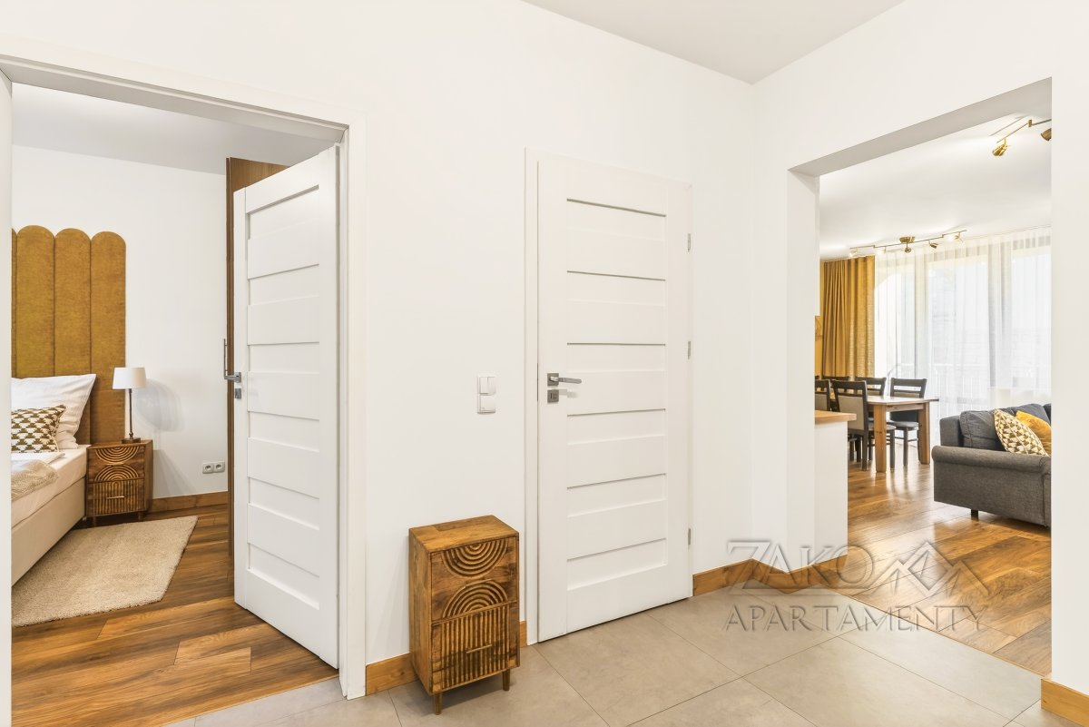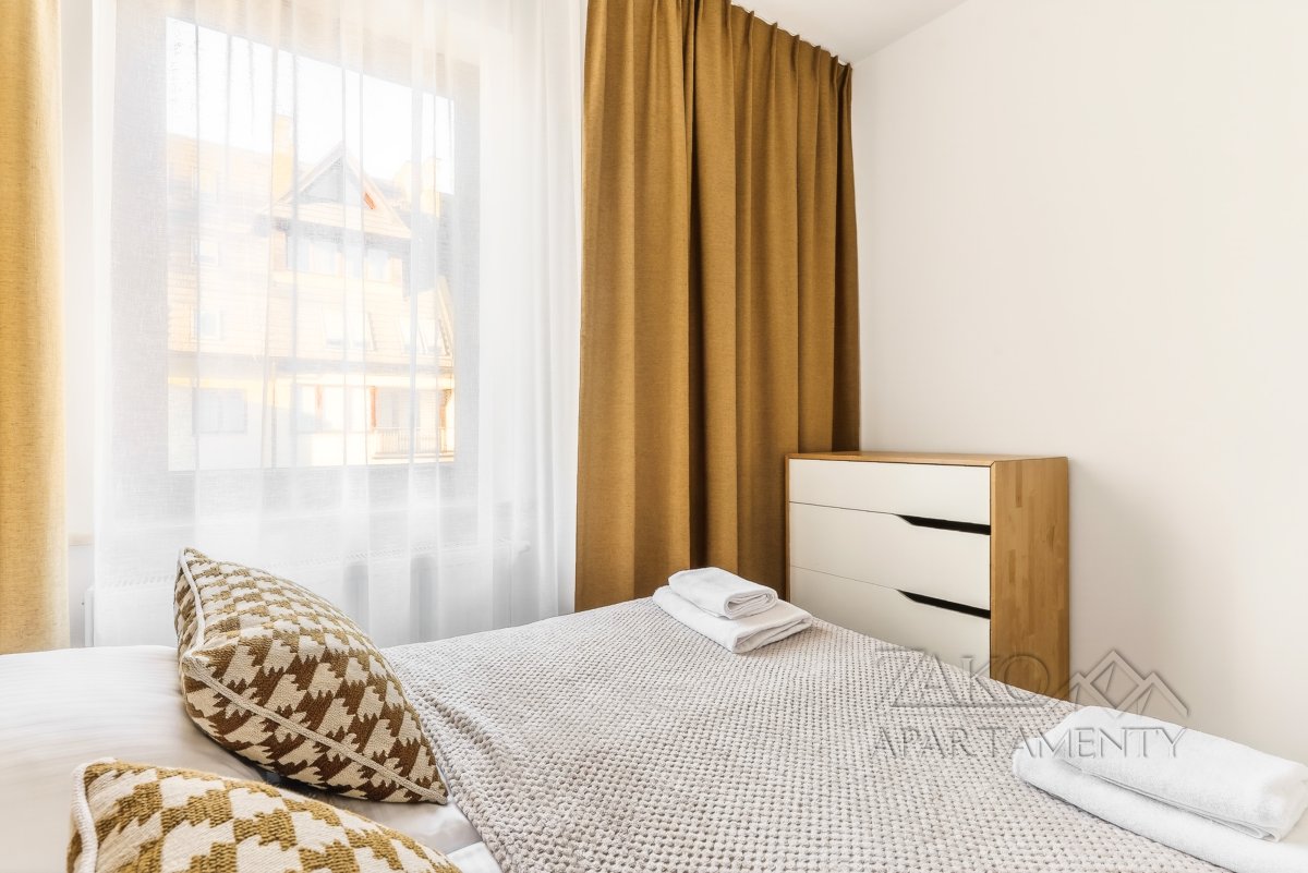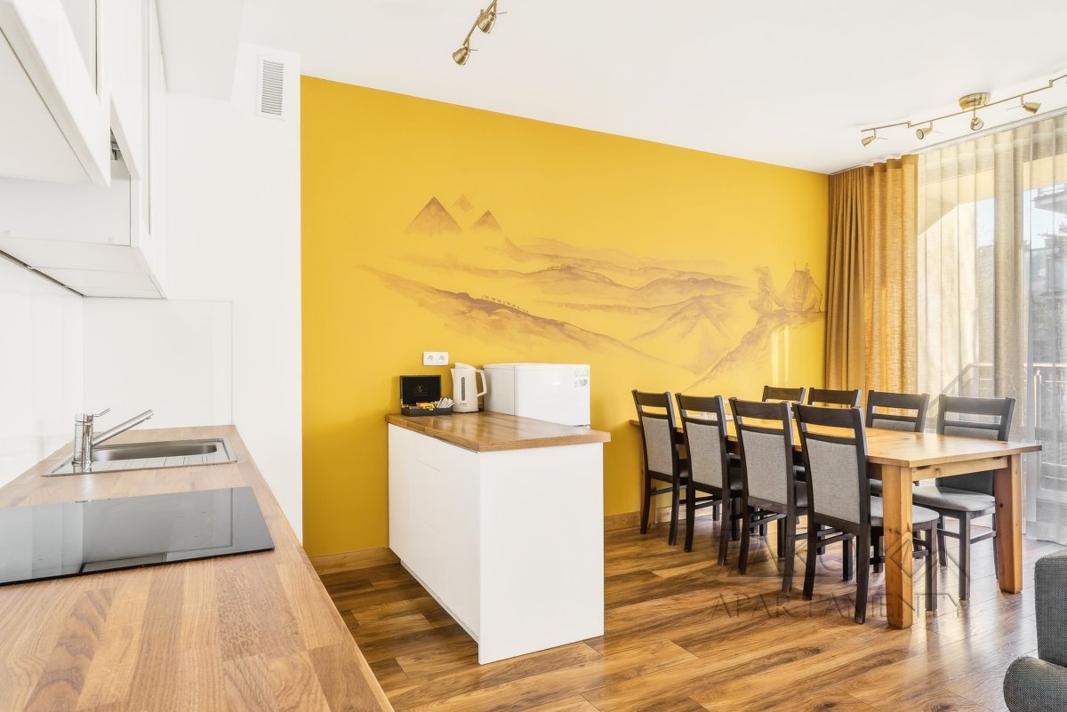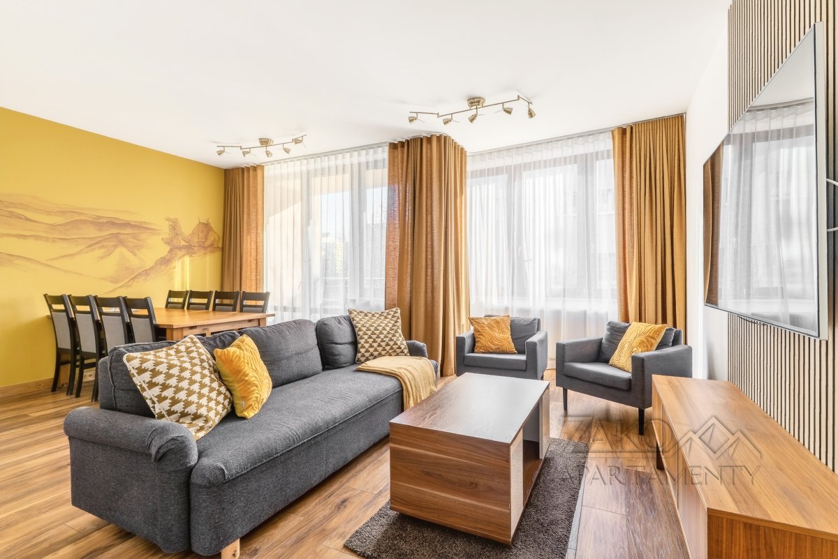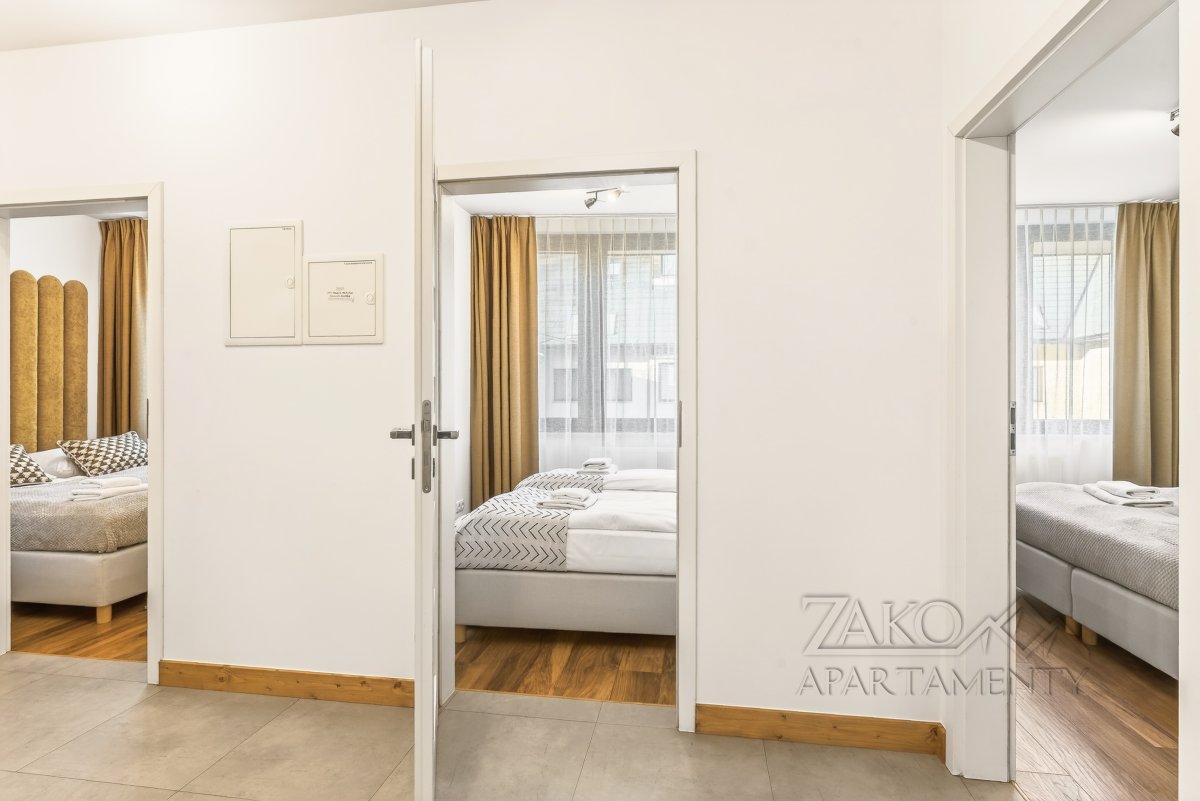 APARTAMENT KAIR to niezależne w pełni wyposażone mieszkanie w centrum Zakopanego. Jest to idealne miejsce dla rodziny lub trzech zaprzyjaźnionych par na co pozwalają trzy niezależne sypialnie. Apartament ten jest pięknie i funkcjonalnie zaprojektowanym wnętrzem, które pozwala na przyjemne spędzenie wypoczynku w nowoczesnym i gustownym wystroju. Do dyspozycji oferujemy przestronny salon z wyjściem na balkon, w pełni wyposażoną kuchnię z częścią jadalną, trzy sypialnie, łazienkę i garderobę.