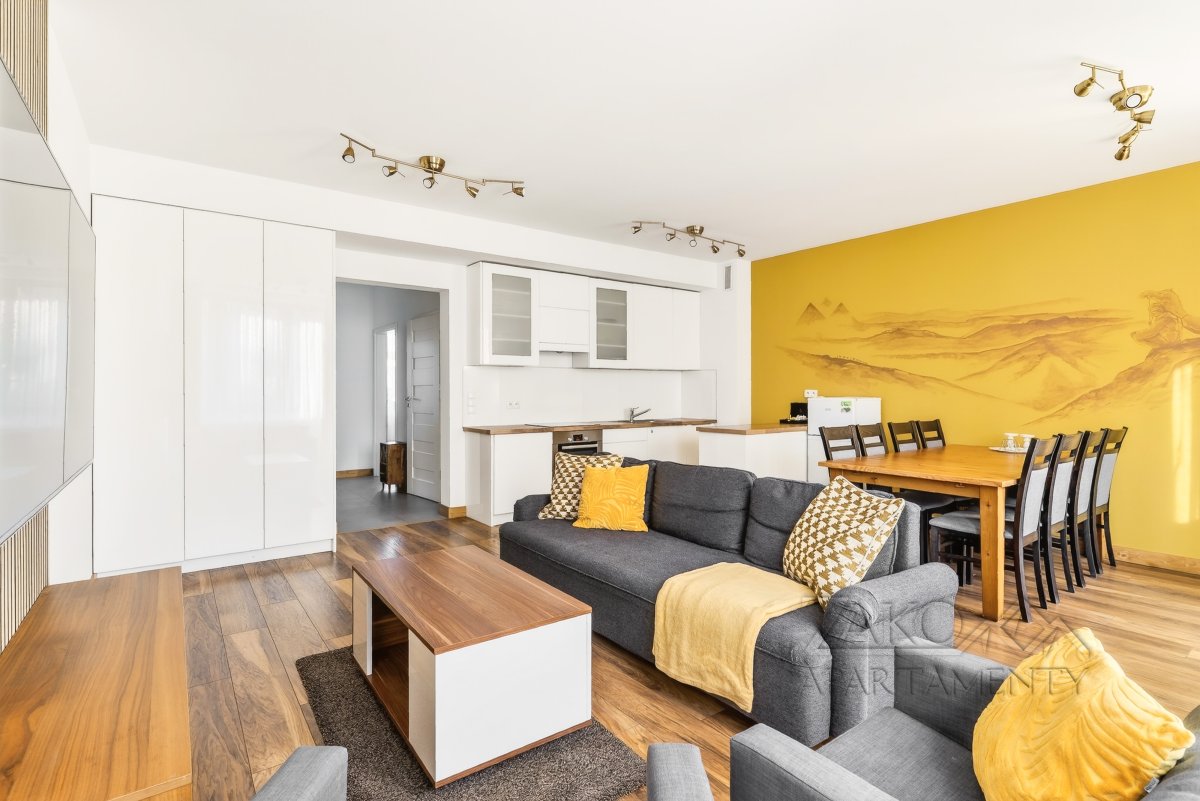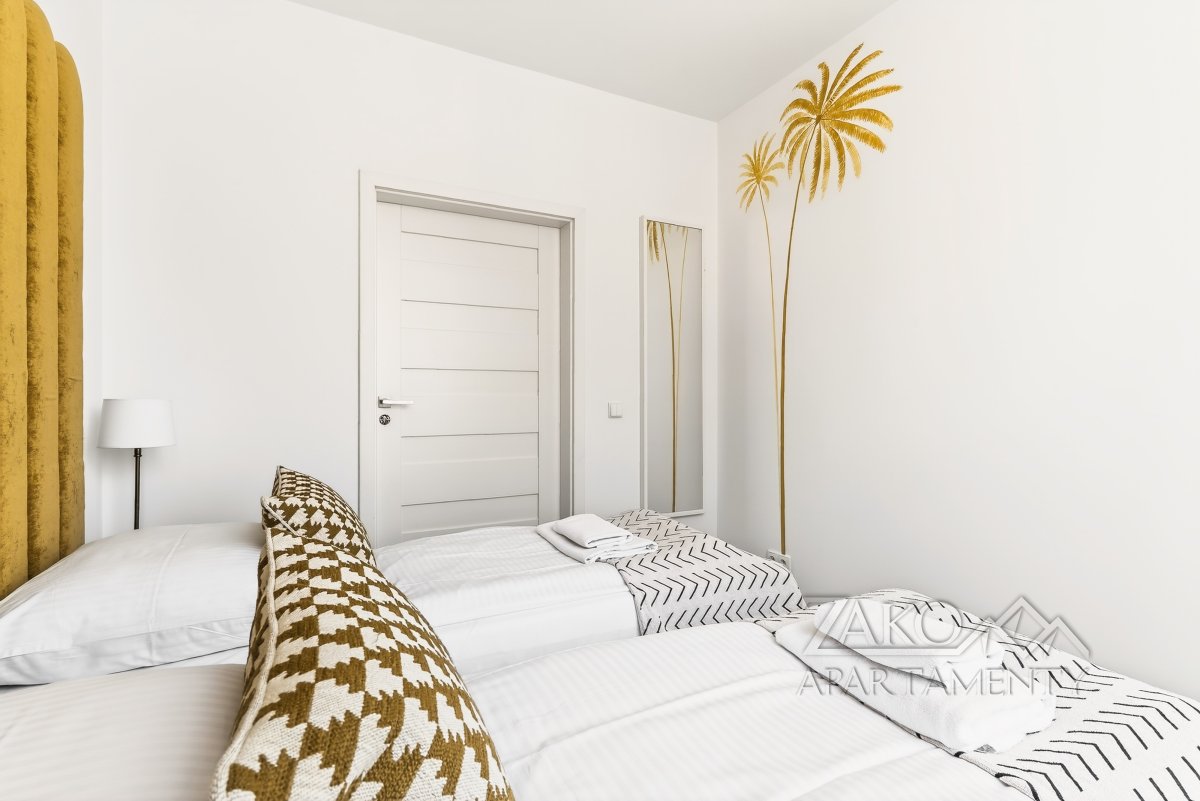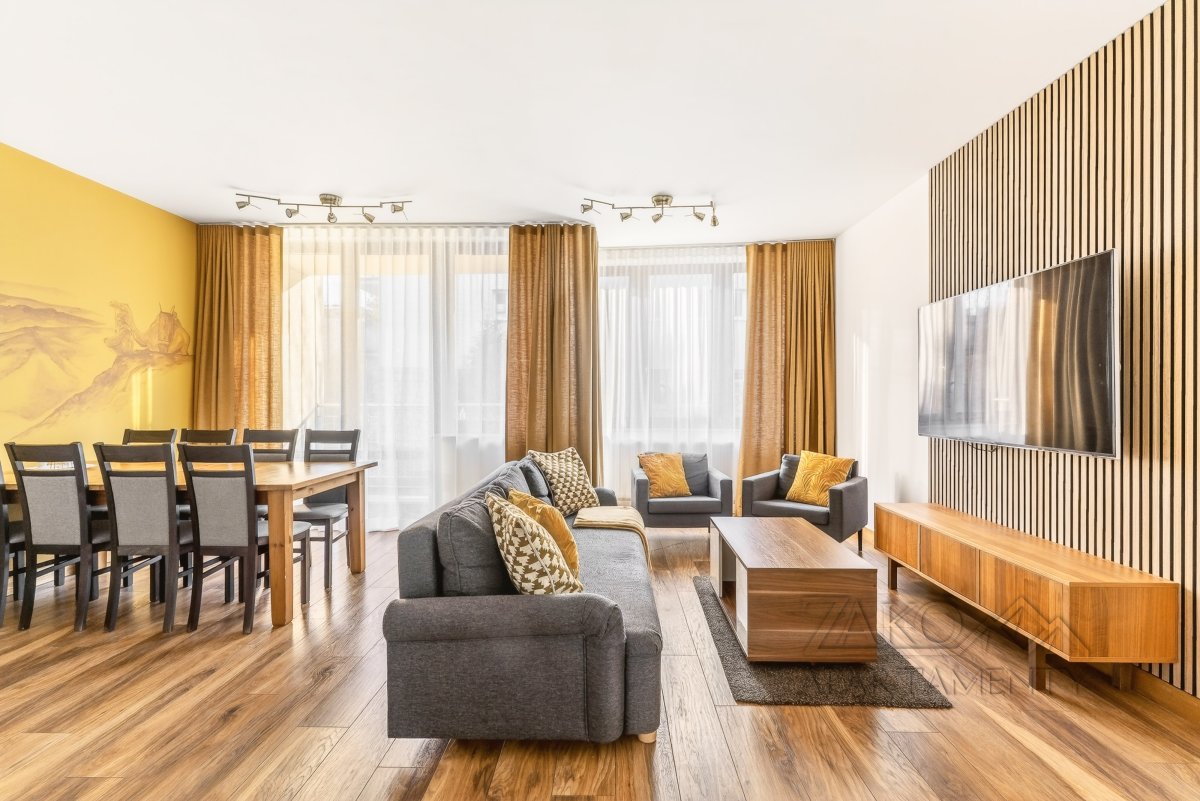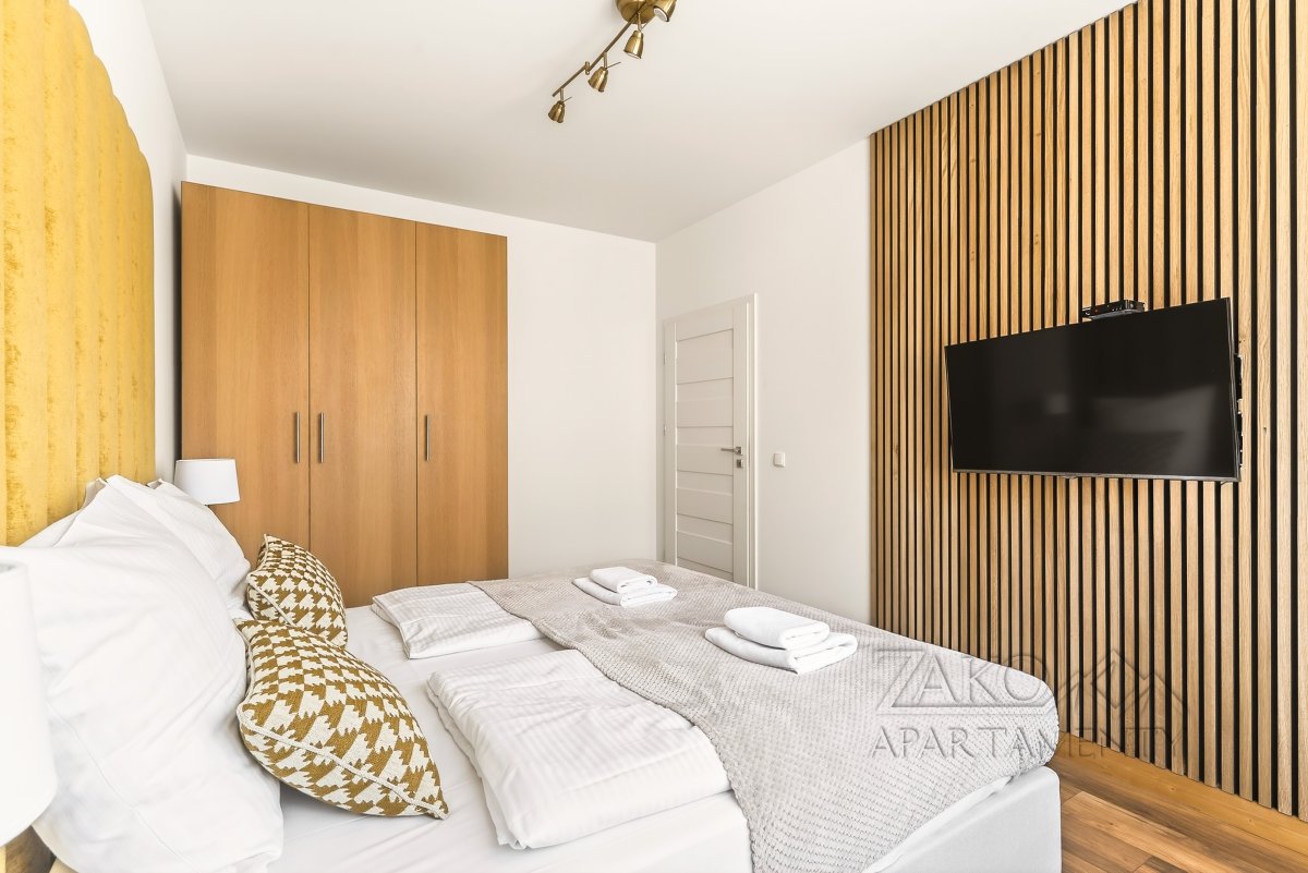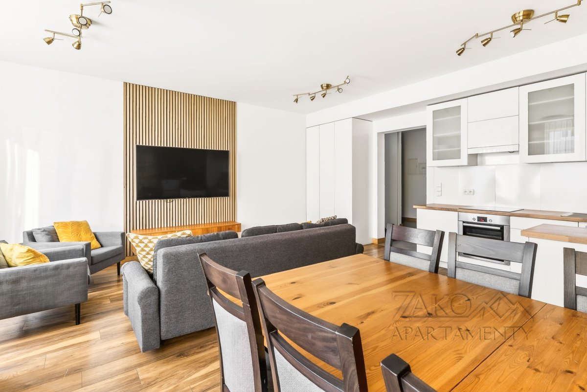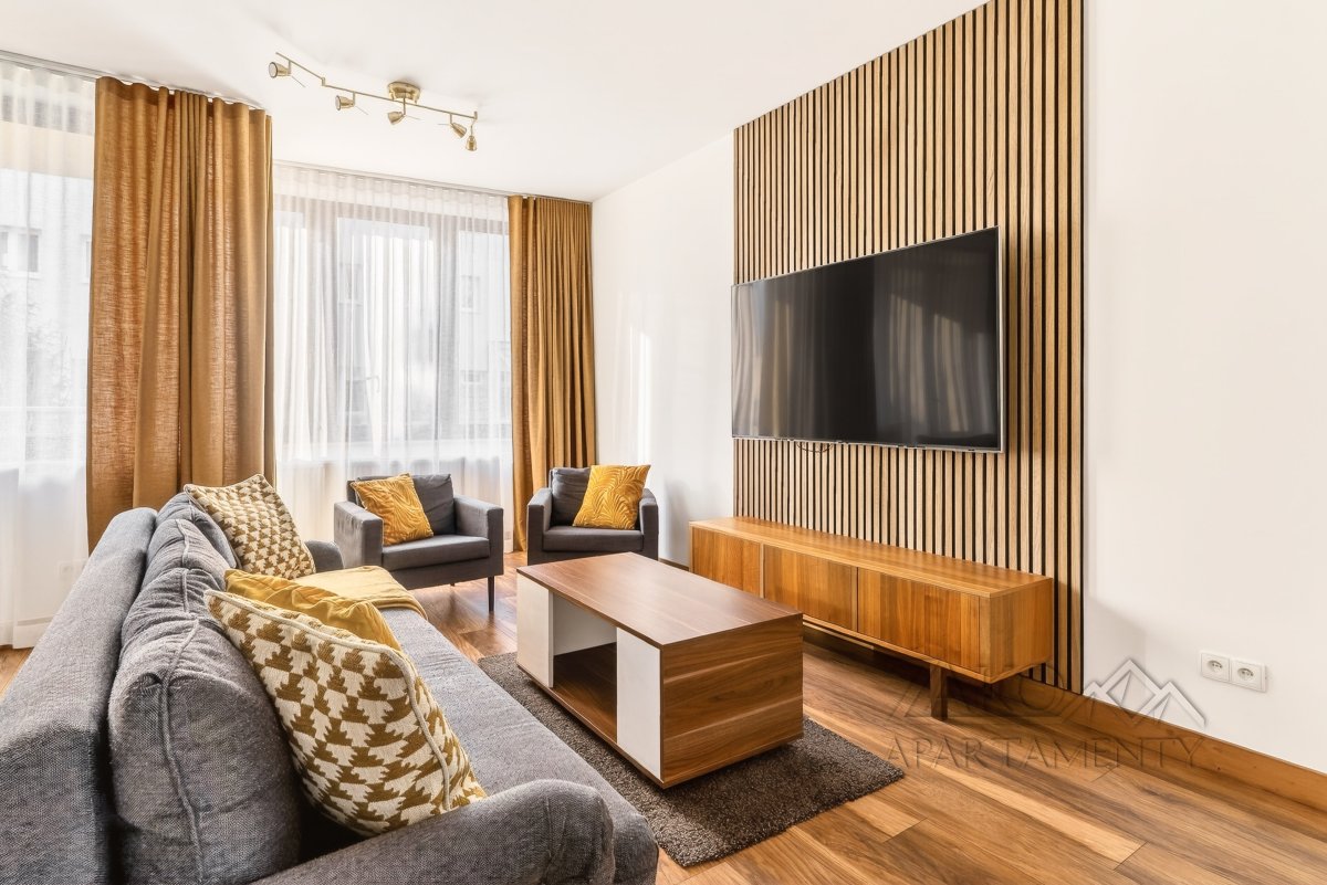 APARTAMENT KAIR to niezależne w pełni wyposażone mieszkanie w centrum Zakopanego. Jest to idealne miejsce dla rodziny lub trzech zaprzyjaźnionych par na co pozwalają trzy niezależne sypialnie. Apartament ten jest pięknie i funkcjonalnie zaprojektowanym wnętrzem, które pozwala na przyjemne spędzenie wypoczynku w nowoczesnym i gustownym wystroju. Do dyspozycji oferujemy przestronny salon z wyjściem na balkon, w pełni wyposażoną kuchnię z częścią jadalną, trzy sypialnie, łazienkę i garderobę.