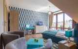 łoże małżeńskie (160 cm/200 cm), łózko jednoosobowe (90 cm/200 cm), szafa, 2x szafka nocna, komoda, TOALETKA, ława, TV 32', pościel, wyjście na balkon z WIDOKIEM na GÓRY. |