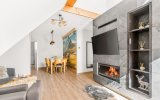 Apartament Leśna Łąka to nowoczesne, jasne i przestronne, wnętrze z klimatyzacją. Zewsząd otaczony jest przestrzenią i przyjemnym złotym światłem. Wieczorami goście będą mogli zrelaksować się w przestronnym salonie przy cieple BIOKOMINKA. Z salonu i łazienki jest wyjście na balkon  z WIDOKIEM na GIEWONT i meblami ogrodowymi.
