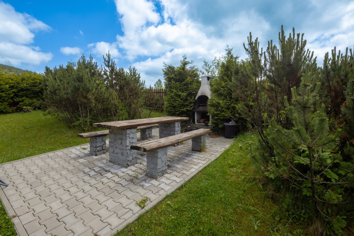 Bezpośrednio w ogrodzie  znajduje się miejsce grillowe z ławami biesiadnymi tylko dla 4 apartamentów budynku DOM TATRA APARTAMENTY. Przed budynkiem znajduje się bezpłatne miejsce parkingowe. Na terenie posesji znajduje się również dodatkowy większy zadaszony grill z ławami biesiadnymi oraz plac zabaw dla dzieci z huśtawką, trampoliną, piaskownicą i bramkami piłkarskimi wraz z pozostałymi domkami. Do dyspozycji gości bezpłatne drewno do kominka od listopada do lutego.