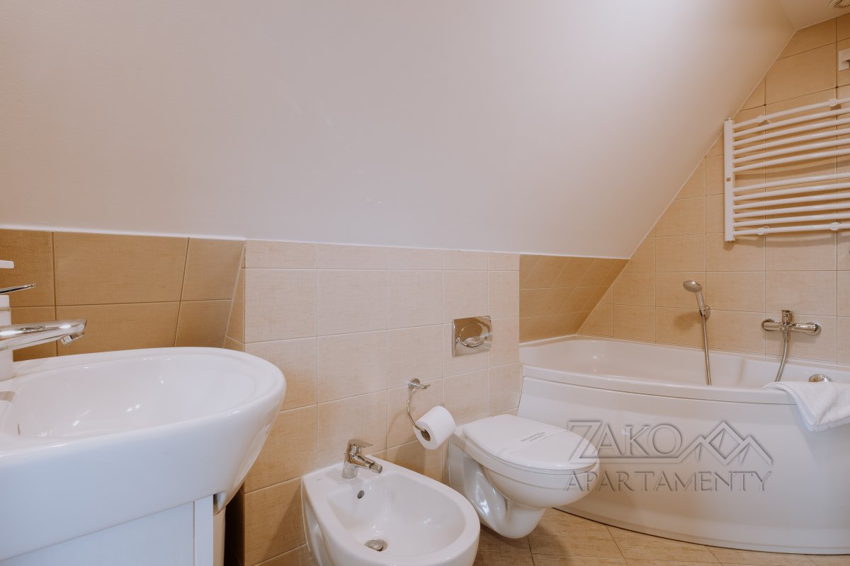 Łazienka 2 Poziom 2 od sypialni: WANNA, wc, bidet, umywalka, mydło, ręczniki