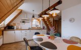 Posiada niezależne wejście z dostępem do dużego OGRODU, dwie oddzielne sypialnie, dwie łazienki, salon z aneksem kuchennym i balkon z WIDOKIEM na GÓRY. Idealnie nadaje się dla jednej lub dwóch zaprzyjaźnionych rodzin.