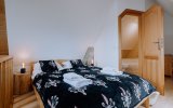 Sypialnia 2 Piętro: Łoże małżeńskie 140 cm/200 cm, komoda, pościel, dodatkowe miejsce do spania 140 cm x 200cm. ŁAZIENKA. Z okna WIDOK na GÓRY.