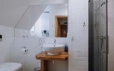 Łazienka Poziom 1: kabina prysznicowa, wc, umywalka, suszarka do włosów, mydło, ręczniki.