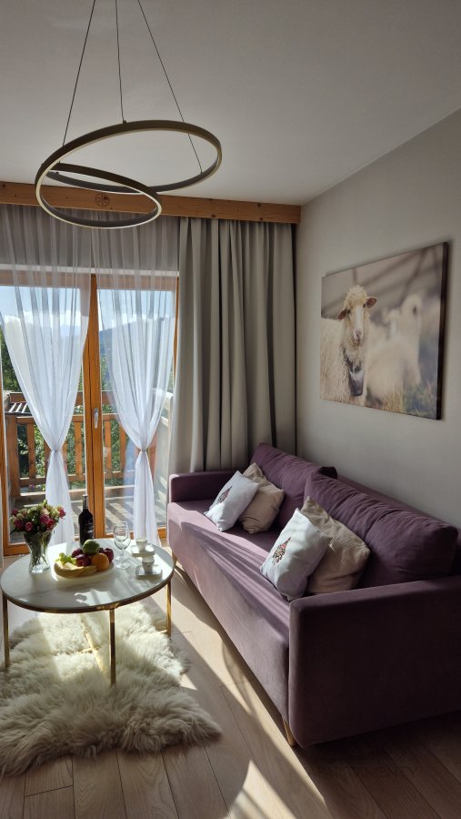 | Więcej informacji | Na wyposażeniu apartamentu jest żelazko i deska do prasowania. W okresie zimowym w czasie opadów śniegu wymagane łańcuchy na koła samochodu. Drewno do kominka we własnym zakresie |